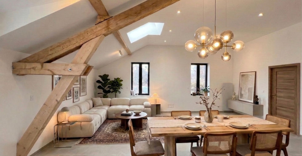 Dès l'entrée, l'espace se révèle par des volumes vertigineux et une charpente d'origine apparente qui confèrent au lieu une âme authentique. La pièce de vie, véritable cœur battant de l'appartement, profite d'une clarté naturelle constante. Des finitions artisanales aux matériaux nobles, chaque élément a été pensé pour sublimer ce cadre de vie prestigieux et hors du temps.